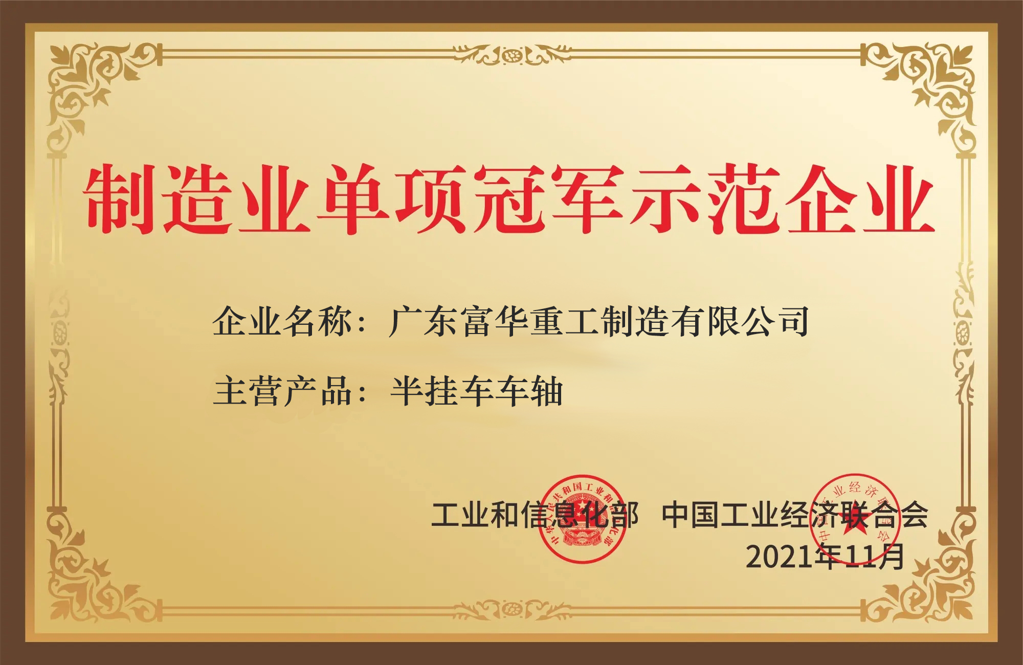 近日,國家工信部發(fā)布了最新一批制造業(yè)單項(xiàng)冠軍企業(yè)名單,廣東富華重工制造有限公司“掛車車軸”榮耀在列。成為制造業(yè)單項(xiàng)冠軍示范企業(yè),彰顯了富華重工高端商用車行走機(jī)構(gòu)制造的硬核實(shí)力。